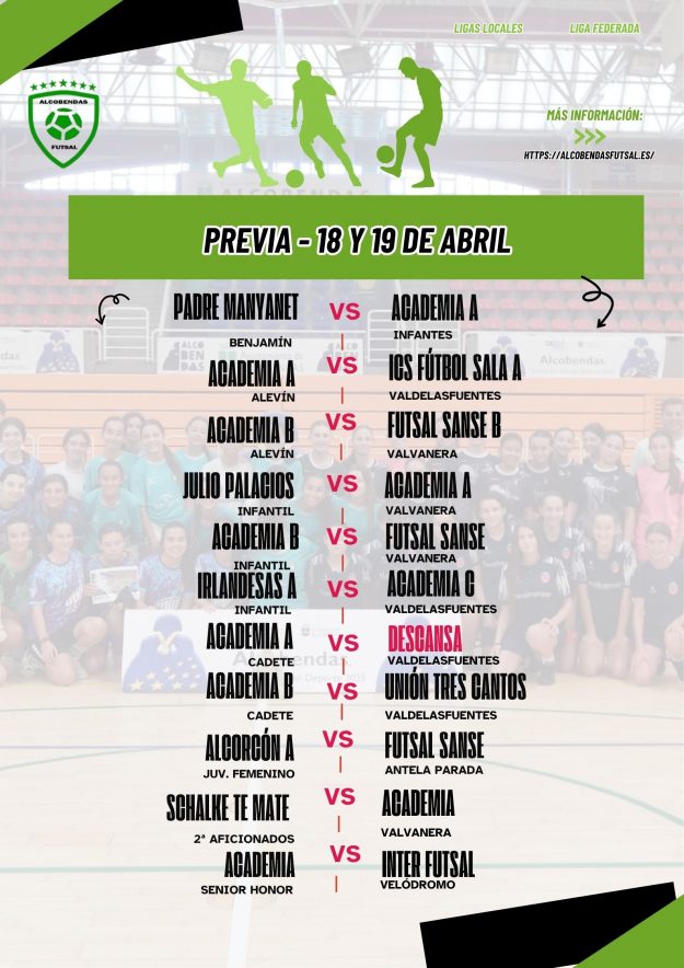 Previa de la jornada deportiva para la Academia del Alcobendas Futsal – 18 y 19 de abril